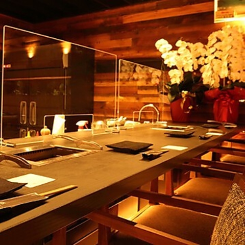 木目を基調としたシックで大人な雰囲気の中で、ゆったりとお食事をお愉しみいただけます。お席はテーブル席・カウンター席・半個室・完全個室と、様々なタイプをご用意。大人の隠れ家のようなプライベート空間で、デートやお食事会などの幅広いシチュエーションをお過ごしください。貸切パーティーのご予約承ります!