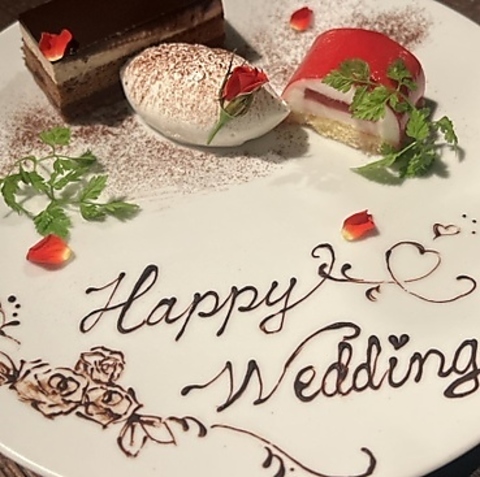 大切なお誕生日・記念日などのお祝いに『特製肉ケーキプレート』『デザートプレート』のご予約を承っております。お名前やメッセージなどを事前にお知らせいただければ、プレートにデコレーションしてご提供いたします。音楽や照明演出もございますのでお気軽にご相談下さい。※肉ケーキプレートSサイズ4,000円~、デザートプレート1,500円