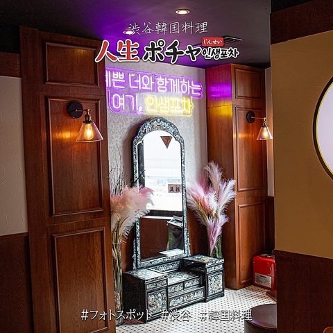 ≪渋谷109から徒歩30秒≫*ネオ韓国料理居酒屋の韓国レトロ空間で韓国焼酎チャミスルとサムギョプサル、チュクミなど夜カフェ・夜ごはん*ランチではお得な本場韓国料理の食べ放題プランをスタート☆ディナーは人気のチャミスル付き飲み放題もあり☆可愛い完全個室もあり。宴会にもおすすめコースや飲み放題