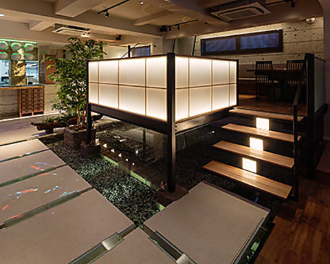 当店の水の上に位置する半個室は、独自のデザインが魅力のプライベート空間です。