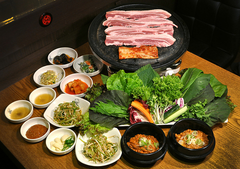 当店のサムギョプサルは、厳選した国内産の生三段バラ肉を使用。脂身が少なく、肉本来の旨味をしっかり味わえます。さらに、サンチュで包んでヘルシーに楽しむのがポイント。ごま油やニンニク、サムジャン、ネギサラダ、焼きキムチを加えれば、自分好みの味にアレンジ可能。ぜひ、特製のサムギョプサルをお試しください!