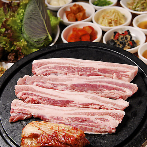ジュワッと肉汁溢れるサムギョプサルが自慢☆日本国内産の上質な生三段バラ肉のみを使用しており、脂身がしつこくなく、お肉の旨味がしっかりと味わえるのが特徴になっている一品です◎サンチュに包んで食べるのも1つの魅力♪ほかにも自分好みにアレンジして楽しめます!ぜひ、一度ご賞味ください♪