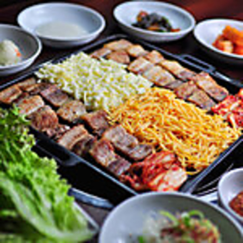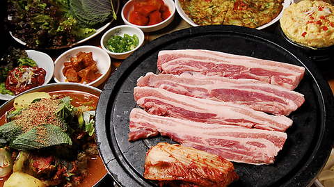 脂身もしつこくなく、お肉の旨味をしっかり味わえるサムギョプサル◎ボリューム満点のセットもご用意!