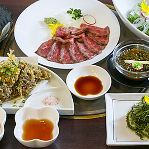 海ぶどうや島らっきょうなど沖縄好きの方におすすめ!グランドメニュー以外に季節の食材を盛り込んだ逸品も