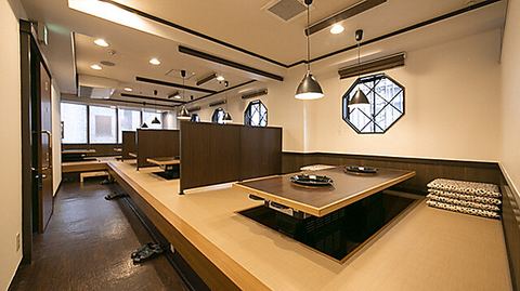 1階にはご家族やご友人同士でのお食事にもぴったりなボックス席、2階には、ゆったりとお寛ぎいただける掘りごたつ席をご用意!仕切りを外せばご宴会も◎接待にも最適な空間となっておりますのでぜひ各種宴会にもご利用ください!