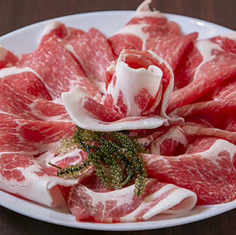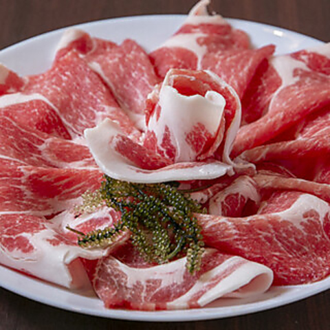 沖縄で主流のアグー豚のしゃぶしゃぶをお楽しみいただけます。甘みたっぷりの脂身と旨味がギュッと凝縮されたとろけるような味わいが魅力です。関東のお客様の舌にも合うようアレンジ♪素材の旨味をより感じられるよう、鰹などをブレンドした特製出汁でご提供いたします。また、お野菜や果物も沖縄から仕入れております。