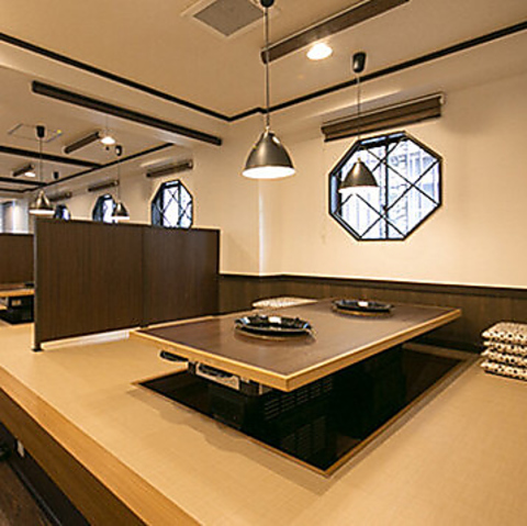 2階には各種宴会や大事な接待にも最適な掘りごたつを席をご用意しており、足を伸ばせてゆったりとお寛ぎいただけます◎仕切りを外すと大人数での宴会可能な空間に。明るい雰囲気と美味しいお食事でごゆっくりとお過ごしください!