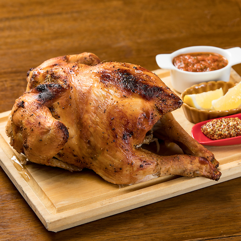 じっくり丁寧に焼き上げる!名物ロティサリーチキン♪