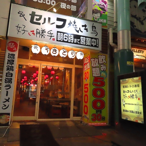 | 店名 | 【朝6時まで営業】新鮮国産串・炭火焼き・貸切・居酒屋 セルフ焼き鳥好き勝手 |