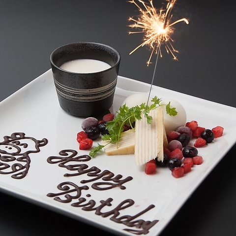 誕生日・記念日に人気のメッセージ付きデザートはコースご利用で無料でのクーポンをご用意しております。