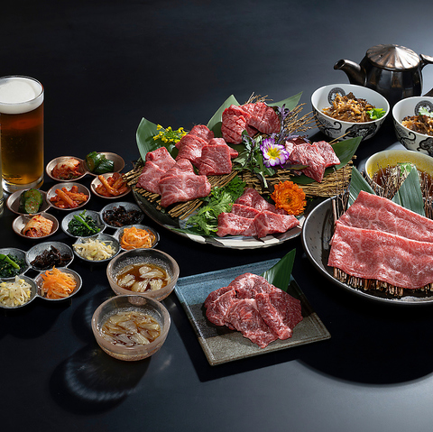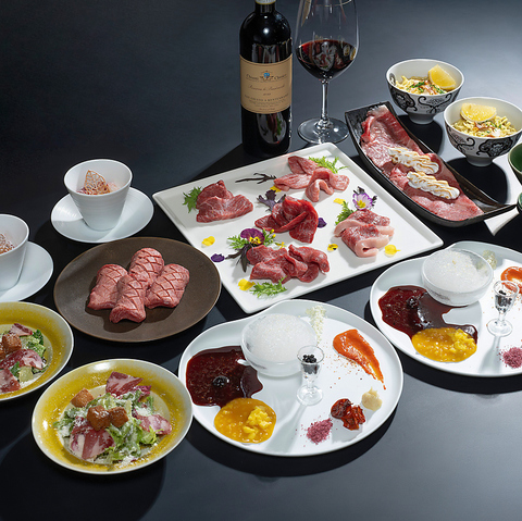 当店「神威」の真髄を感じていただきたい為、コース料理をご用意しております。和牛の美味しさを最大限に感じていただけるよう、部位ごとに適正な厚みを見つけ出しました。食材の質感や味わいを最大限に引き出す、それぞれの食材に合わせたカットの仕方で提供いたします。素材本来の旨味を是非お楽しみください。