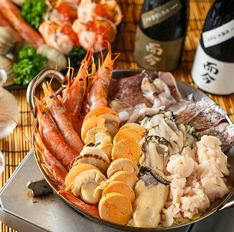 鮮度抜群の朝〆鮮魚を五種盛りで豪華に堪能。香味だれで仕上げた若鶏の南蛮揚げは、自家製タルタルの濃厚な旨みと相性抜群。メインは魚介と旬菜をふんだんに盛り込んだ漁師風海鮮寄せ鍋。魚介の旨みを凝縮した出汁が身体を温め、寒い季節にぴったりの逸品です。歓送迎会や新年会、接待や女子会など幅広いシーンに最適な、贅沢な季節限定プランです。