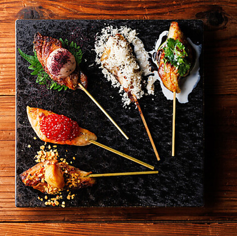 火ノ膳に来たらコレ!自慢の干物、漬け魚を串に刺して炭火でじっくり焼き上げました。魚の魅力を存分に味わえるお得な盛り合わせです。