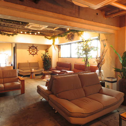 綺麗で明るい空間づくりにこだわります。日中は陽の光が差し込み、夜は落ち着いた雰囲気でシーシャをお楽しみいただけます。ソファのお席でゆったりとお過ごしください!