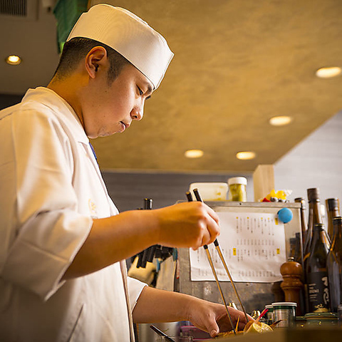 目の前で調理を見ることができるので目でもお楽しみいただけます◎料理人との会話もできるのでまた行きたくなること間違いなし!
