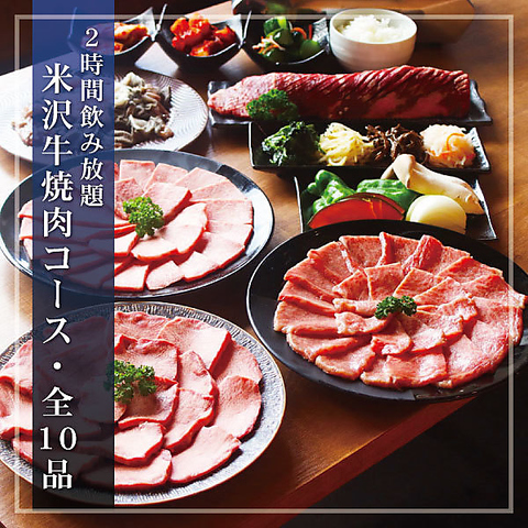 とろけるような極上の米沢牛を囲んで、贅沢な焼肉宴会はいかがですか?上質な赤身から霜降りまで、旨みたっぷりの米沢牛を贅沢に盛り込んだコースは特別な集まりや歓送迎会にもぴったり。豊富なドリンクが2時間飲み放題でついて、会話も笑顔も自然と弾みます。美味しいお肉と気の合う仲間と心に残るひとときをぜひどうぞ