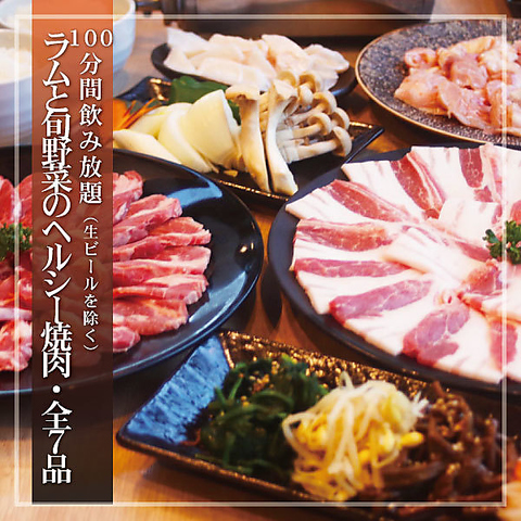 ヘルシーラムと旬の野菜焼肉コース100分飲み放題付き