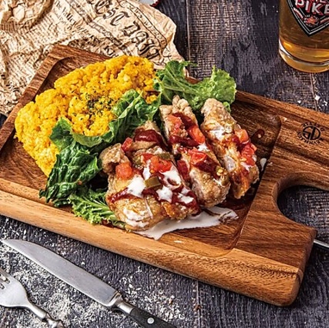 外はカリカリ、中はジューシーに揚げた当店オリジナルフライドチキン。そのままでも楽しめますが、味変でお好みのソースでもよりお楽しみいただけます。※スパイシー風味でよりビールとの相性抜群【ソース】●メイプルハニー柚子●BBQソース●レリッシュ&マヨ●タルタル ハラペーニョ※各100円(税込)