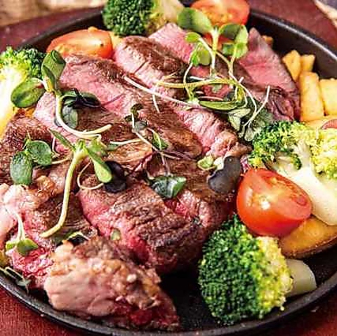 香ばしく食べ応え抜群◎アツアツ鉄板の牛ロースステーキ