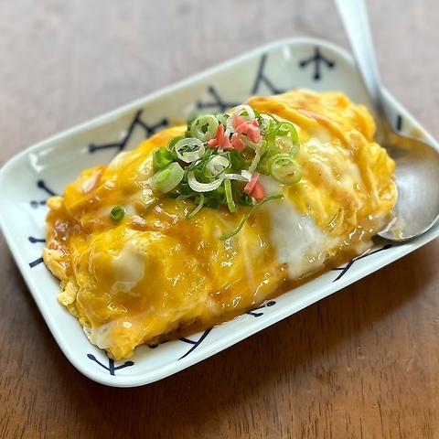 叩いた豚バラ肉を鉄板で焼いて卵をかぶせ、自慢のマスタードソースで!下にひいた千切りキャベツと豚肉と卵を混ぜて食べるのがオススメです。