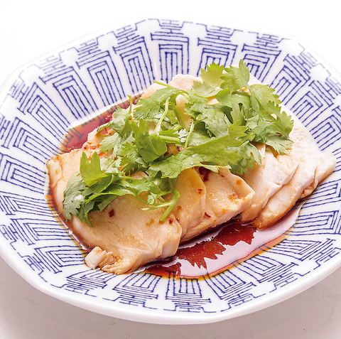 蒸し鶏のパクチーピリ辛ダレ