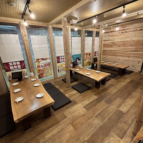 レイアウト自在なテーブル席もございます。最大35名様まで入れるので団体様のフロア貸切も大歓迎!別途カウンター席もございます。サク飲みから宴会まで幅広くご利用ください!