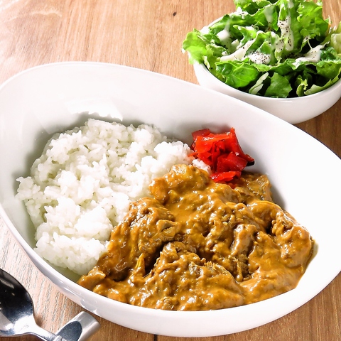 しんのすけで使用している和牛を捌いた際に出る、黒毛和牛のすじ肉のみをじっくり煮込んでカレーに仕立てております。黒毛和牛由来のコクと旨味をご堪能ください。サラダ付き