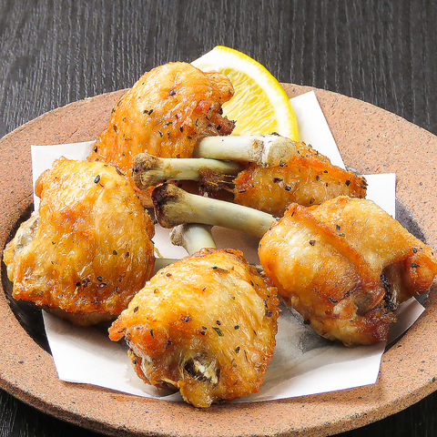 お酒が進む絶品メニューが勢揃い!中でもおすすめは名物『チューリップ唐揚げ』。皮はパリッと、中はジューシーに揚げました。ハーブの香りがアクセントになって、ついついお酒が進む味です。「食べ出すと止まらない」と評判の看板メニュー、ぜひ気軽につまんでください♪