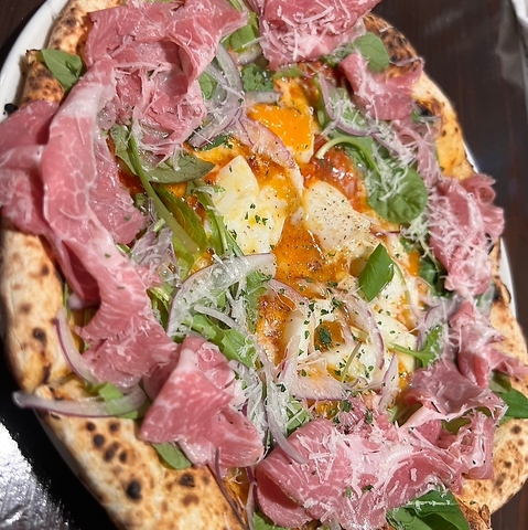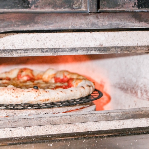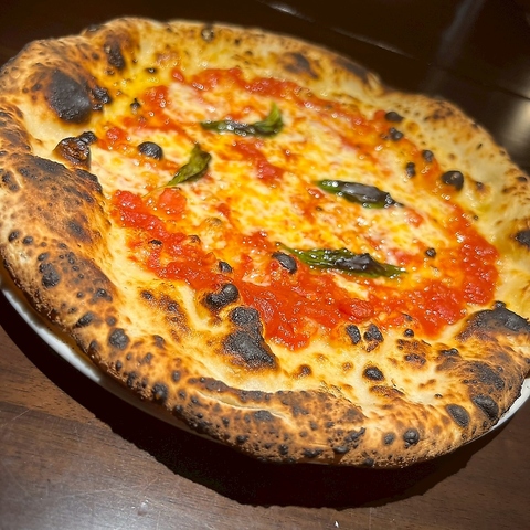 自家製の生地とトマトソースに身体に優しい無添加チーズをトッピング。超高温の石窯で焼き上げるため、そとはカリカリ、なかはふっくら生地に!焼きたての小麦の香りをお楽しみください!!