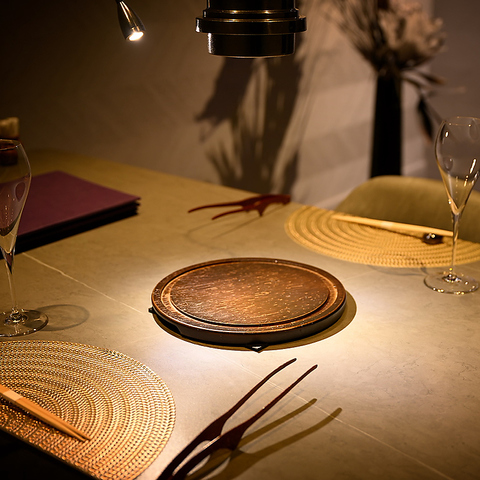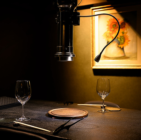 【唯一無二の空間】日々の喧騒を忘れさせてくれる上品で洗練されたリラックスできる空間をご用意しました。アート、照明、素材、質感にもこだわり、普段よりもちょっとだけ格別に、最高の「食体験」を演出します。オープンカウンター、完全個室、掘りごたつ、モニター付個室と様々なシーンでお使いいただけます。