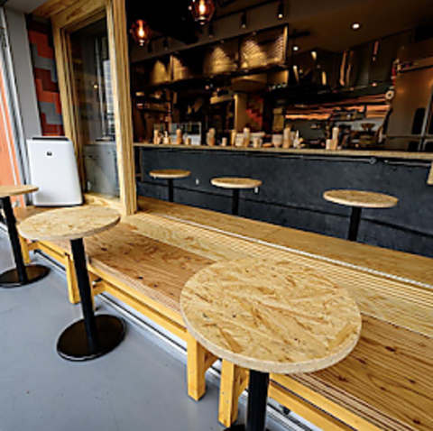 店内ベンチシートは2テーブル(着席) 各テーブルに最大4名可能※推奨3名