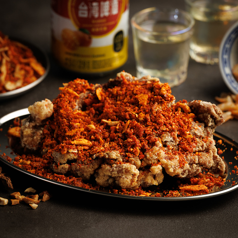 サクッと揚げた台湾唐揚げに特製スパイスをふんだんにかけています。