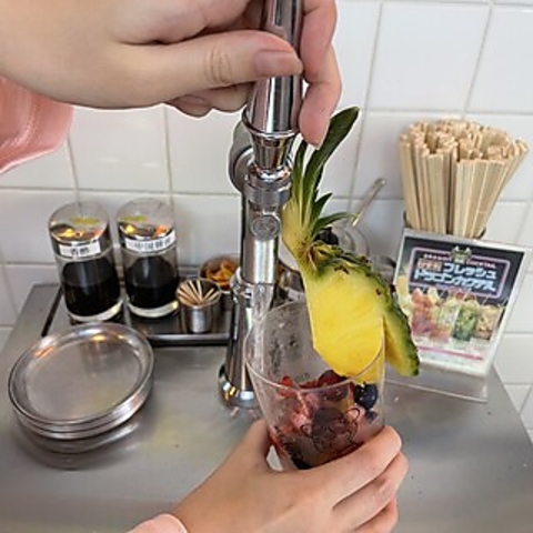 【卓上の蛇口から好きなだけ!】フルーツ盛り盛り♪パイナップルやイチゴなどのフルーツおかわりし放題!