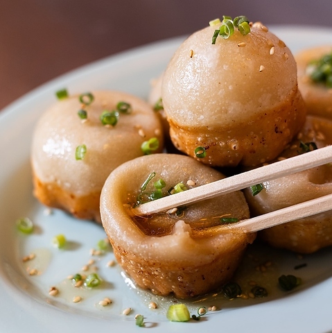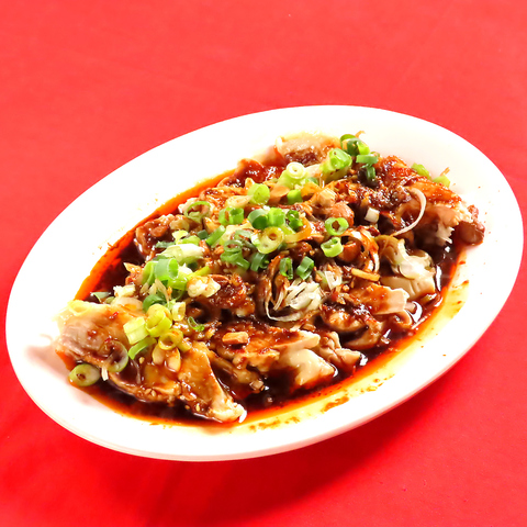 山椒等のスパイスが効いた自家製ラー油をかけたやみつきになる逸品です。