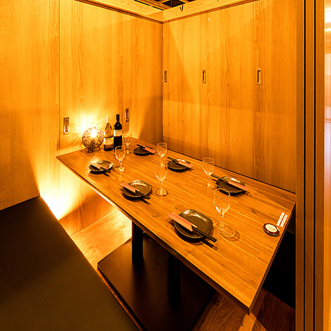 少人数でゆったり過ごせる完全個室を完備。落ち着いた空間で周りを気にせずお楽しみいただけます