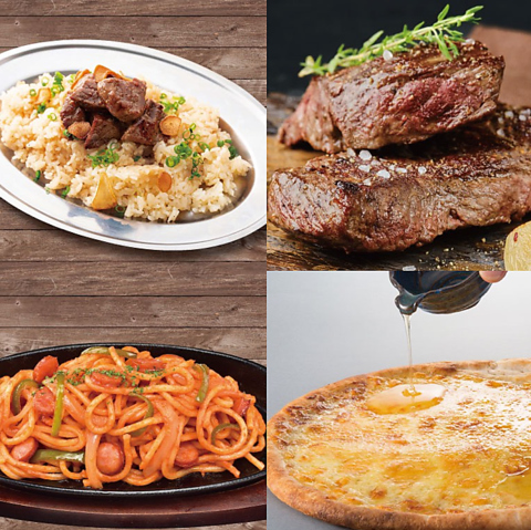 【春~夏メニュー】ガーリック牛ステーキライス,1ポンドステーキ,ナポリタン,クワトロフォルマッジ/759円~