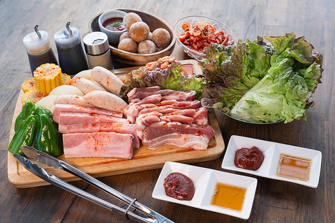 焼きたてのお肉をサンチュに包み、コチュジャンやごま油の香りとともに豪快に味わう韓国風の本格コース!
