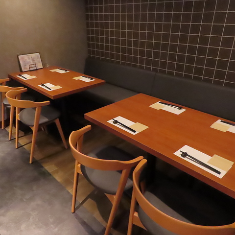 【各種ご宴会にも】店内には4名掛けのテーブル席が2卓ございます。席を繋げることで、大人数でのご予約も可能となっております。お得に楽しめるコースメニューもございますので、女子会、ご宴会などにぜひご利用ください。