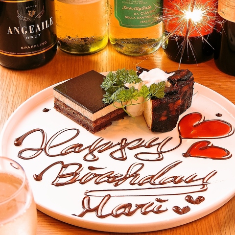 誕生日や記念日、主役のいる歓送迎会などにぴったりなメッセージ付きデザートプレートをご用意!nicoならではのサプライズで思い出に残る一日をお手伝いいたします♪1980円で豪華フルーツ盛り合せプレートにグレードアップも可能◎女子会やデート、ご宴会などお気軽にご予約ください!