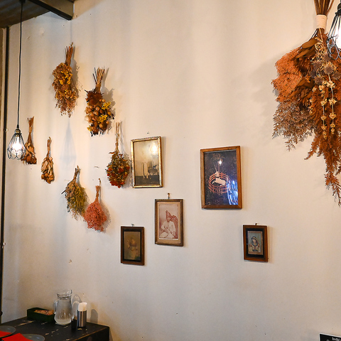 【落ち着いたおしゃれな店内で】灰色や濃い木目を基調としたお洒落な空間。広々とした店内には、席間を広くとったゆったりと過ごせるテーブル席のほか、お一人様でもお立ち寄りやすいカウンターを完備◎ランチはもちろん、お食事を楽しみながらの一杯にもご利用いただけます。デートや女子会、季節のご宴会にも◎