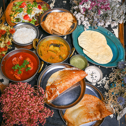南インドのお料理を存分にお楽しみ頂けるコースや、季節のカレーをご堪能頂けるコースがお料理のみ&2時間飲み放題付きでございます。少人数でのお食事会から、大人数でのワイワイ宴会でもおすすめです!インドビールやインドワインと合わせてお楽しみ頂くのもおすすめです。是非ご利用ください。