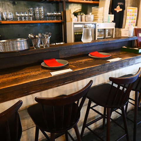 おひとり様でもご来店しやすいカウンター席を完備。お食事利用やしっぽり飲みなどお好みのシーンでお気軽にご利用ください。