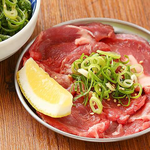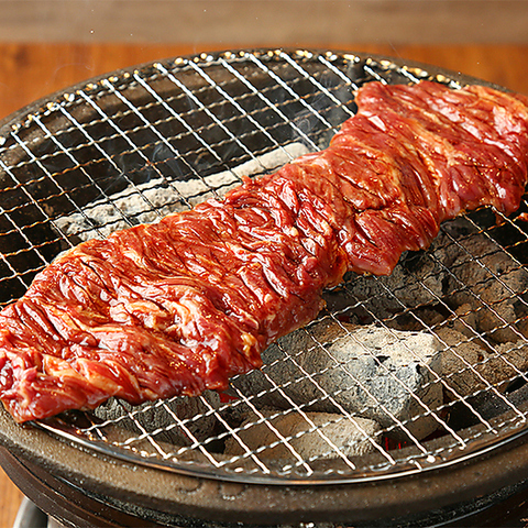 厚切りのハラミとは逆に、カルビは薄切りで味わっていただくのが当店流!わずか数秒で焼けることから名前が付けられた当店のイチオシ!とろけるような食感と、炭火の芳ばしさが相まってごはんともお酒とも相性抜群です。その他にも「裏カルビ」や「タンカルビ」等をご用意。380円~とリーズナブルにお愉しみいただけます◎