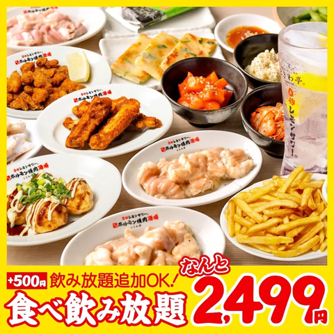 焼肉ホルモンやサイドメニューが食べ放題の【お気軽コース】!ソフドリ飲放付き2499円(税込2749円)~!