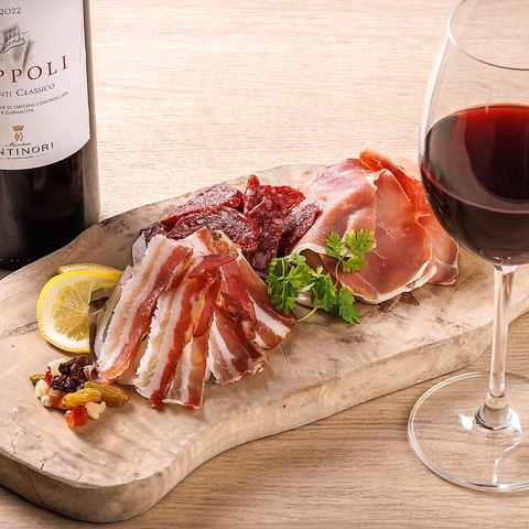 ボンジョルノ食堂の生ハムは一度に楽しむことができる「生ハム盛り合わせ3種」!味の違いを楽しみつつ、食べ比べも出来るのでお気に入りを見つけてみては?♪ワインとの相性抜群◎※2人前~ご注文承っております。