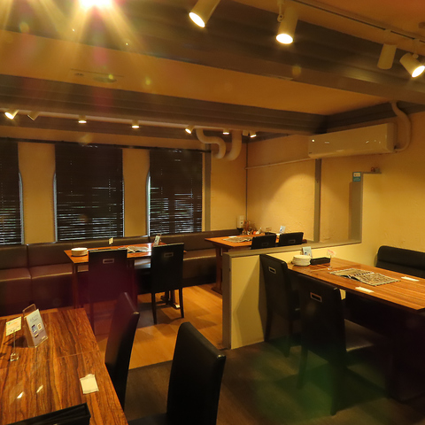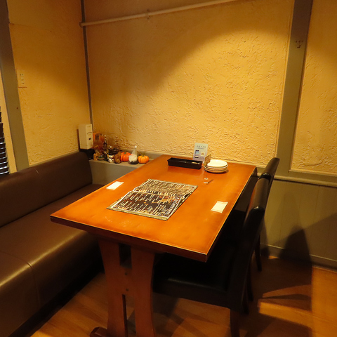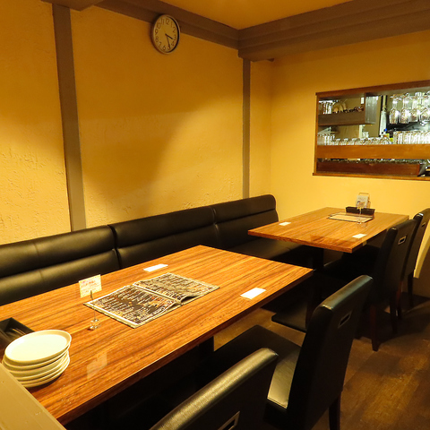 4名様用のテーブル席を6卓ご用意しております。シーンを選ばない木製のテーブル席はどなたにとっても過ごしやすい印象で、ご友人同士で会話や料理を楽しむひとときやお仕事帰りに癒しの一杯を嗜む場としてぴったりです。