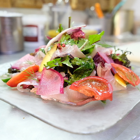 野菜は鎌倉の契約農家、魚介は横須賀・三浦の市場から仕入れるなど、産地にこだわった素材選びが特徴。土の香りがするような新鮮な野菜や、朝獲れの鮮魚を活かした一皿は、どれも力強い旨みが感じられます。シンプルな調理で素材の良さを引き出すのがこの店のスタイル。