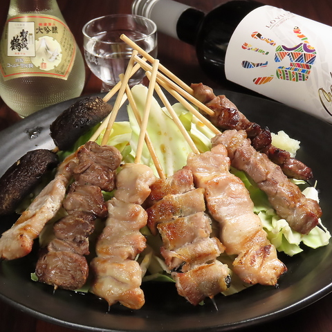 串焼きの定番をおまかせでお肉4種類、野菜1種類