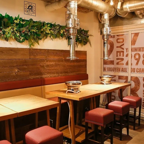 雰囲気抜群!木と緑に囲まれた店内でオシャレに焼肉!同僚とのお食事会や、コンパやデートにも最適です!