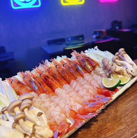 テーブルに届いた瞬間、思わず写真を撮りたくなる様な圧巻のビジュアル!ぷりぷりの海老は,生でも頂ける鮮度も有り、しゃぶしゃぶすればとろける甘味と旨みも広がり,野菜と相性抜群!!さらに〆は海老旨みを凝縮された出汁でラーメンや雑炊で残すことなく堪能できる一品。写真も味も2度おいしい自慢の商品です
